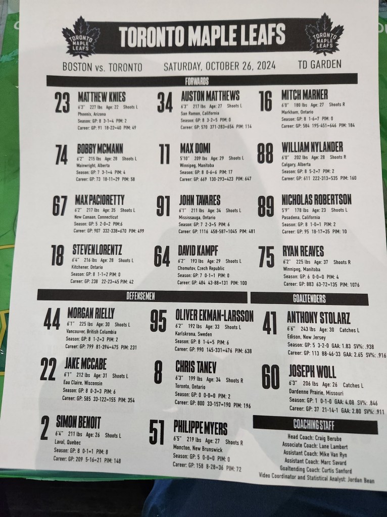 Something will eventually give in the Atlantic Division, and if this is that year for Toronto, having just brought in Craig Berube, the shake-up would likely be a significant player move, while in the Bruins’ case Jim Montgomery is on the last year of his contract and now has former Boston protege Jay Leach on his bench. Should the Bruins not solidify the solid steps they seem to be taking from the leadership on down and achieve sustainable and tangible results in the win-loss columns, then we’ve seen this a hundred times before.