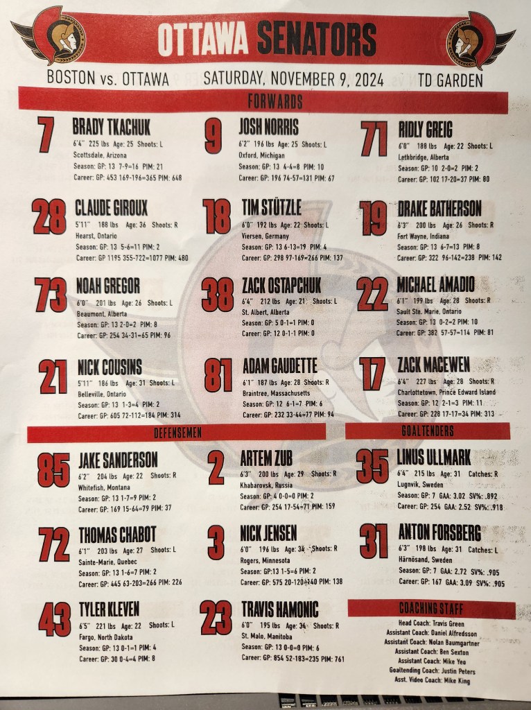 Brady Tkachuk to the penalty box for slashing with 5:34 remaining in the first period. Bruins to the powerplay … not a bad powerplay, but Ullmark made any shots that got through look easy.
