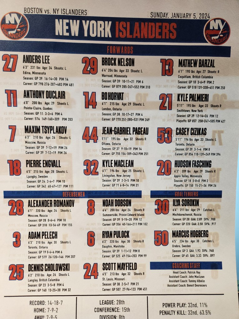 Although they have a highly rated goaltender in Ilya Sorokin, the Isles have allowed 124 goals in 39 games.