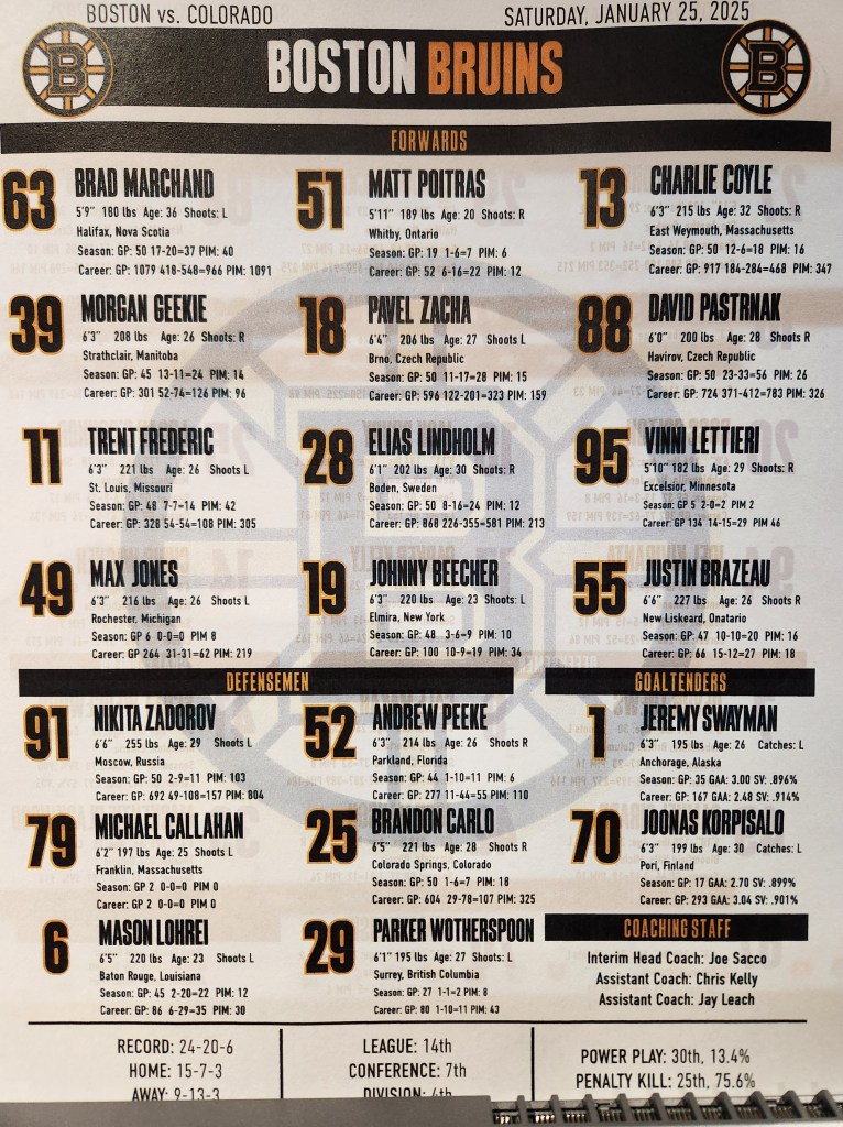 Colorado powerplay: Necas and MacKinnon traded passes in the LW corner, but the most they got from it was a too-tight backhand chip by MacKinnon that Swayman walled away. It was all Bruins PK after that, starting with a Lindholm pass for Pavel Zacha could not collect. Then a Marchand steal and rag passing by the Bruins, then Coyle and Zacha swooped in, around the Colorado net until Coyle lost an edge. Period ends with nine seconds left on Pastrnak’s penalty.