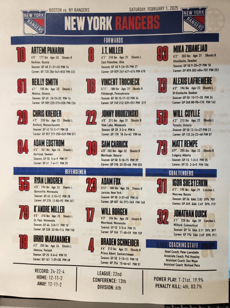 Here are today’s projected lines/pairings/starters: Mika Zibanejad will skate right wing opposite Artemi Panarin with Miller at center. The Bruins will counter with Elias Lindholm between Brad Marchand and Charlie Coyle, so both teams have a centerman starting this game on the wing.