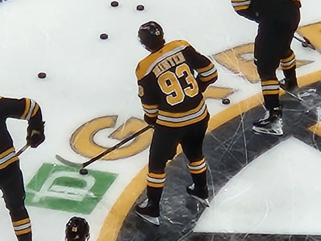 Teams take the ice for the game, and the Minten era begins … Minten, by the way, is the first Bruin ever to wear 93. Take that, Petr Nedved.