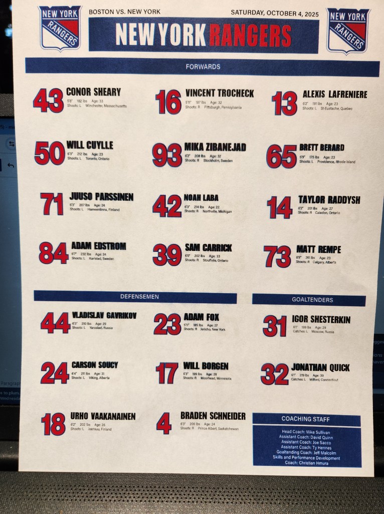 It’s close to varsity for the Boston Bruins and a not-too-shabby New York Rangers lineup here at TD Garden. Expect lines below: