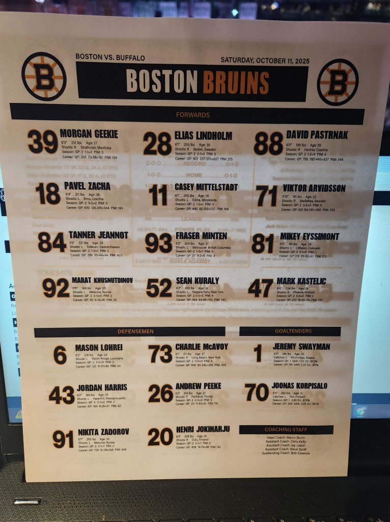 Tonight the 2-0-0 B’s face the 0-1-0 Buffalo Sabres, the team that keeps drafting for the rest of the National Hockey League. When does the madness end in Buffalo? Every game this season will be Buffalo’s attempt to answer that question.