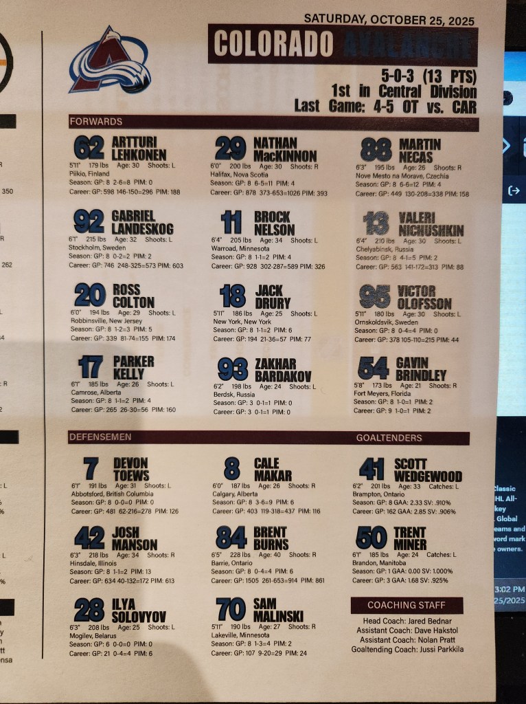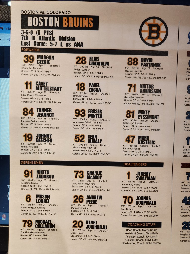 The third period should provide an entertaining 20 minutes, as the desperate Bruins try to hang on against of the world’s more explosive hockey teams. The Avalanche came in 5-0-3 and certainly don’t want this game to become its first L of the season, no more than the Lightning want their Columbus Day performance here to be its only W of the season.