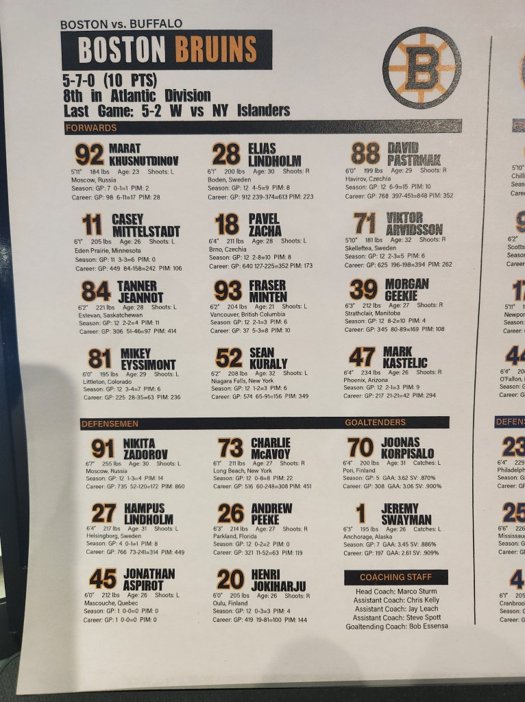 Bruins end the first period with two seconds left to kill on Khusnutdinov’s PIM, so notice if Marco Sturm starts the top line so that the Russian left winger can jump out of the penalty box and right into his line’s structure without having to spring clear across the ice while the Bruins reset.