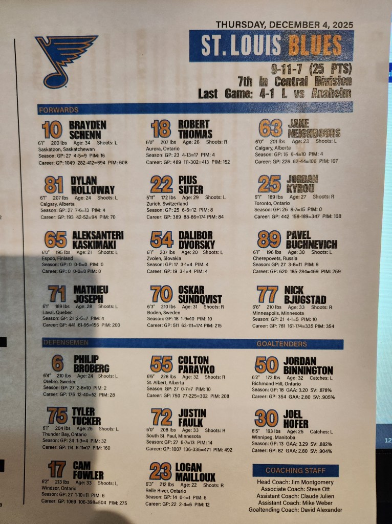 Don’t be surprised if Binnington does not return for the third period. Joel Hofer is the backup.