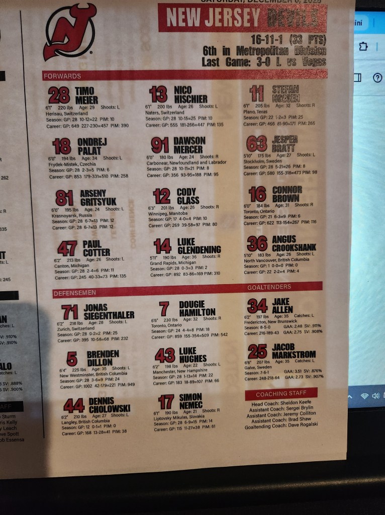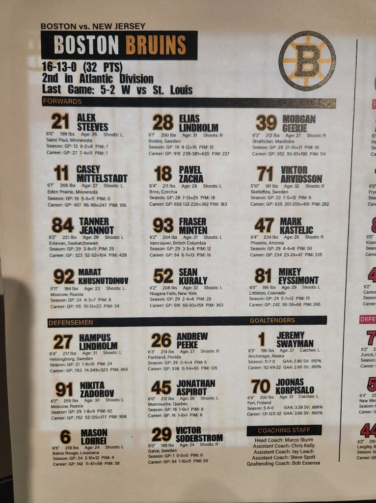 It’s a big game tonight not only because they’re all big but because the Bruins are about to go on a three-game road trip, and it would be beneficial morally to win two in a row, something the Bruins have not accomplished since sweeping the home-and-home with Toronto on Nov. 11. It’s been an especially challenging stretch for the Bruins while missing their two best players, David Pastrnak and Charlie McAvoy, plus other top-nine forwards and a regular defenseman at times during the past four weeks. The Devils (16-11-1 but on a four-game losing streak) are also banged up (no Jack Hughes, Evgenii Dadonov or Brett Pesce) and lost 3-0 on home ice last night to Vegas. Jacob Markstrom played against the VGK’s, so Jake Allen is in the New Jersey net tonight against Jeremy Swayman.