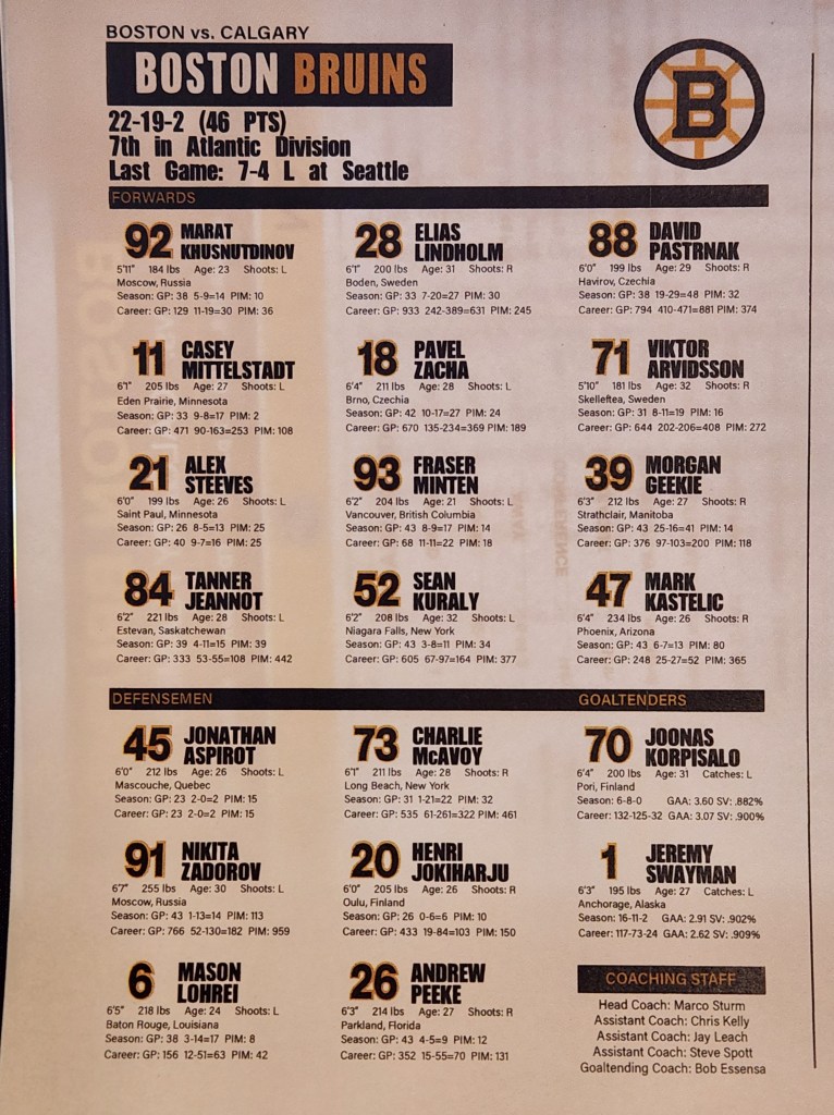 This is a classic case of the third goal seeming imminent all period but not forthcoming as of yet, and should Calgary score the next goal, the Bruins’ mastery of this game will suddenly turn into nail-biting drama.