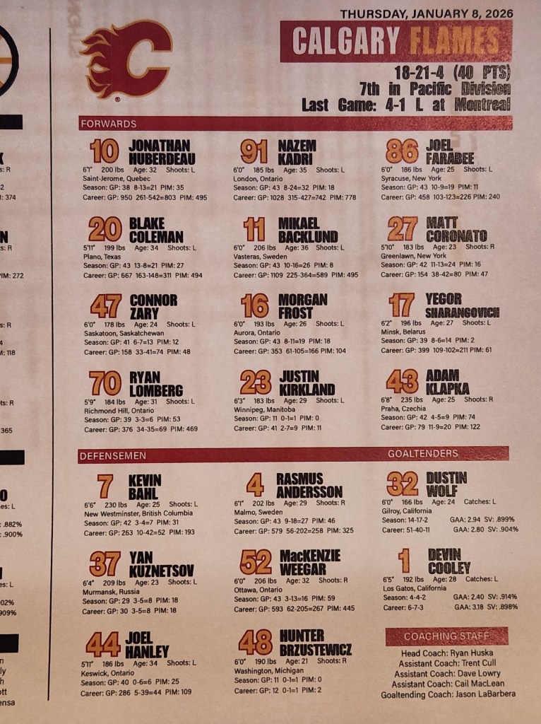On the second of back-to-back’s, the Flames seems to lack a pulse tonight. Even the scrappy edge with which they play has appeared tonight only briefly.