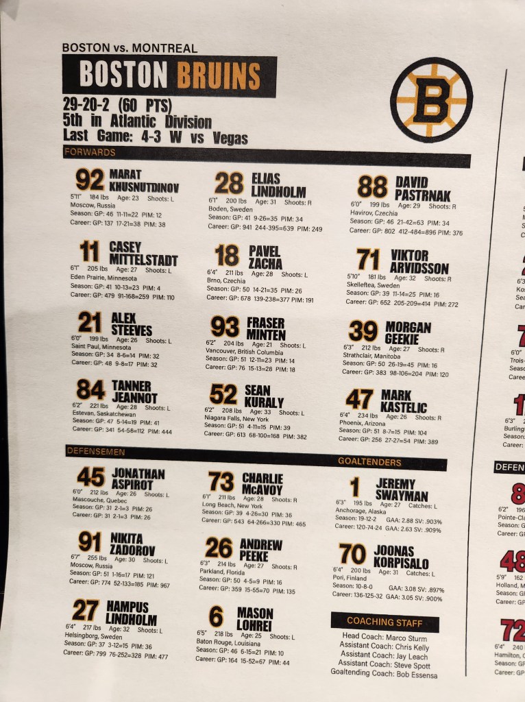 We’re halfway through this one, and while it still feels like it’s been Montreal’s game all the way, shots are only 12-9 now, and the Bruins are very much in it and yet to find their own rhythm at 5v5. It certainly hasn’t been there shift to shift.