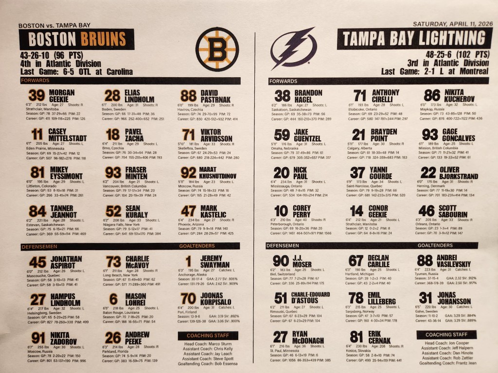 James Hagens is here because a wedding gets a honeymoon. Note that coach Marco Sturm is holding out the newcomer pending the clinching of the playoff spot. Once that mission is accomplished, it’s a good bet Hagens makes his NHL debut tomorrow night in Columbus. If the Bruins somehow make it to Sunday with the season still on the line, then all bets are off.
